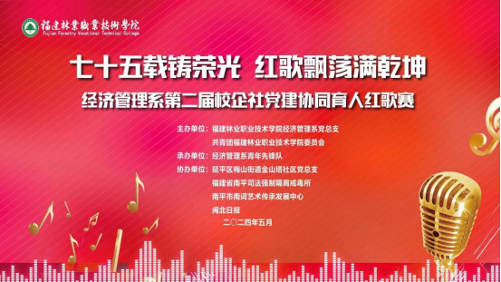 为深入学习贯彻党的二十大精神,强化党建赋能,凝聚强大合力,引导广大师生厚植家国情怀,2024年5月9日,篮球欧洲杯下注_欧洲杯投注网站下载-官网经济管理系党总支、院团委、延平区梅山街道金山塔社区党总支、福建省南平司法强制隔离戒毒所、南平市南词艺术传承发展中心和闽北日报联合开展“七十五载铸荣光,红歌飘荡满乾坤”校企社党建协同育人红歌赛主题活动。学院党委副书记严绍裕、院团委副书记(主持工作)雷栩艺、院组织部统战部副部长赵诗羽、梅山街道金山塔社区党总支书记郑艳、福建省南平司法强制隔离戒毒所回归指导大队政治教导员余建清、南平司法强制隔离戒毒所监察室三级警长余津、经管系主任林文胜、经管系党总支副书记(主持工作)王昉、经管系副主任宋李玉、院学工部学生教育管理科科长温全军、各系党总支专职组织员、经管系全体党支部书记、辅导员及部分师生代表参加本次活动。