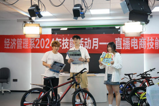为培养学生将专业知识学以致用,进一步培育和挖掘本学校电子商务优秀人才,经济管理系2024年度技能活动月“直播电商”技能竞赛决赛在经管楼401举行,本次活动共有200多名同学报名参赛,经过海选、初赛等选拔环节,最终有6组队伍进入决赛。