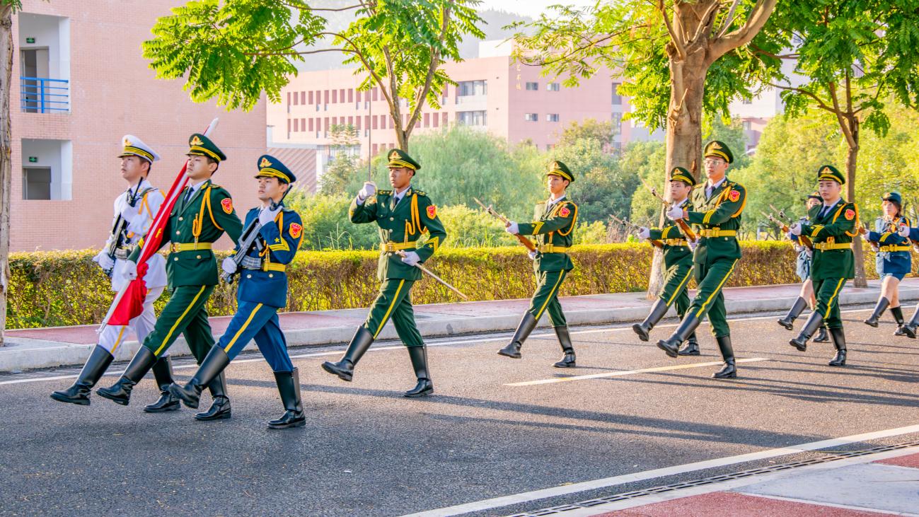 上午七点整,田径场上师生们整齐列队,神情庄重。国旗护卫队的旗手迈着铿锵有力、整齐划一的步伐,护卫着鲜艳的五星红旗走向升旗台。在庄严雄壮的《义勇军进行曲》中,鲜艳的五星红旗冉冉升起,迎风飘扬,全体师生肃立,向国旗行注目礼。这一刻,对革命先辈的无限崇敬与对伟大祖国的深沉热爱在每个人心中激荡。