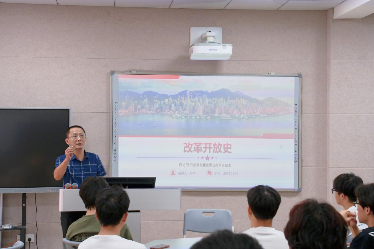 为进一步加强“五史”学习教育,引导青年学生树立正确的历史观,在学思践悟中坚定理想信念,为新时代改革开放贡献力量,6月25日上午,交通工程系党总支书记、主任孙华在交通楼204为联系班级道路与桥梁工程技术2301班全体学生带来了一堂主题为“改革开放史”的专题党课,让同学们深刻理解改革开放的伟大意义和深远影响。