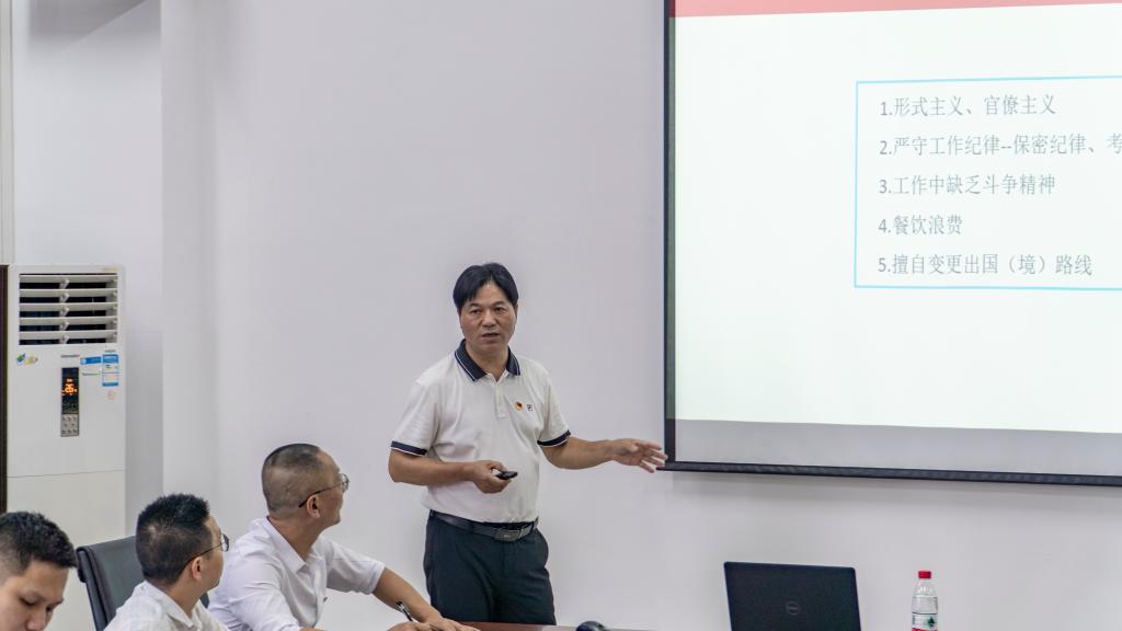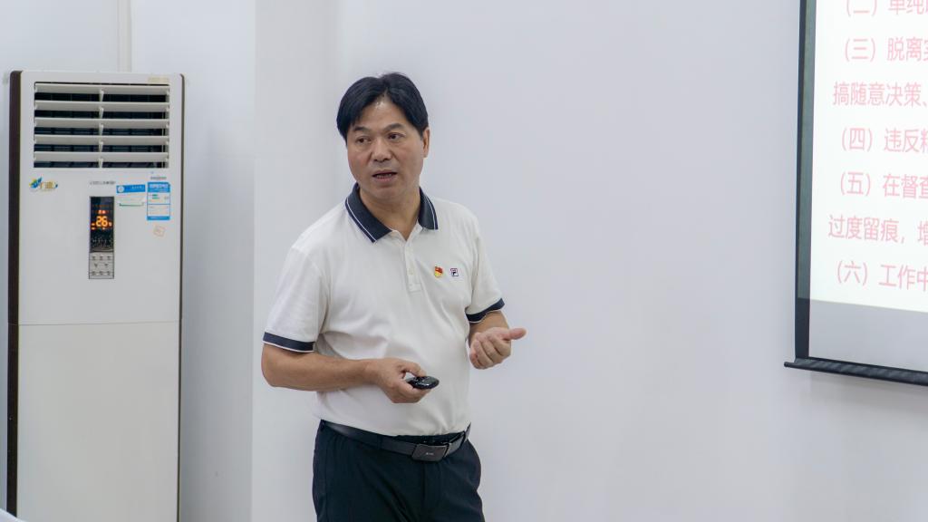 7月2日,院党委副书记严绍裕以《以案释纪,严守党的工作纪律》为题,向交通工程系全体教师党员讲授党纪学习教育专题党课。交通工程系党总支书记、主任孙华主持。