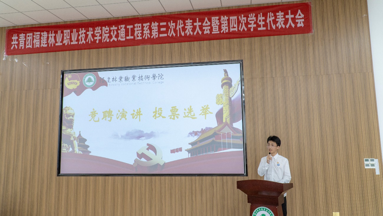 由建筑工程系团总支副书记(学生)林宇婷同学代表兄弟系团总支学生会致贺词,向大会的召开表示诚挚的祝贺。并预祝交通工程系第三次团员代表大会暨第四次学生代表大会圆满举行。