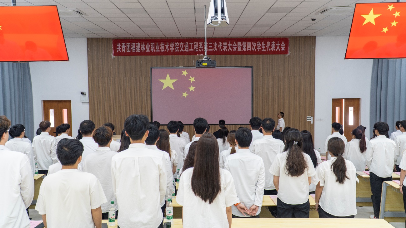 由系学生科科长兼团总支书记李建文老师致开幕词。全体参会成员肃立并奏唱国歌,在嘹亮的国歌声中交通工程系第三次团员代表大会暨第四次学生代表大会拉开了序幕。