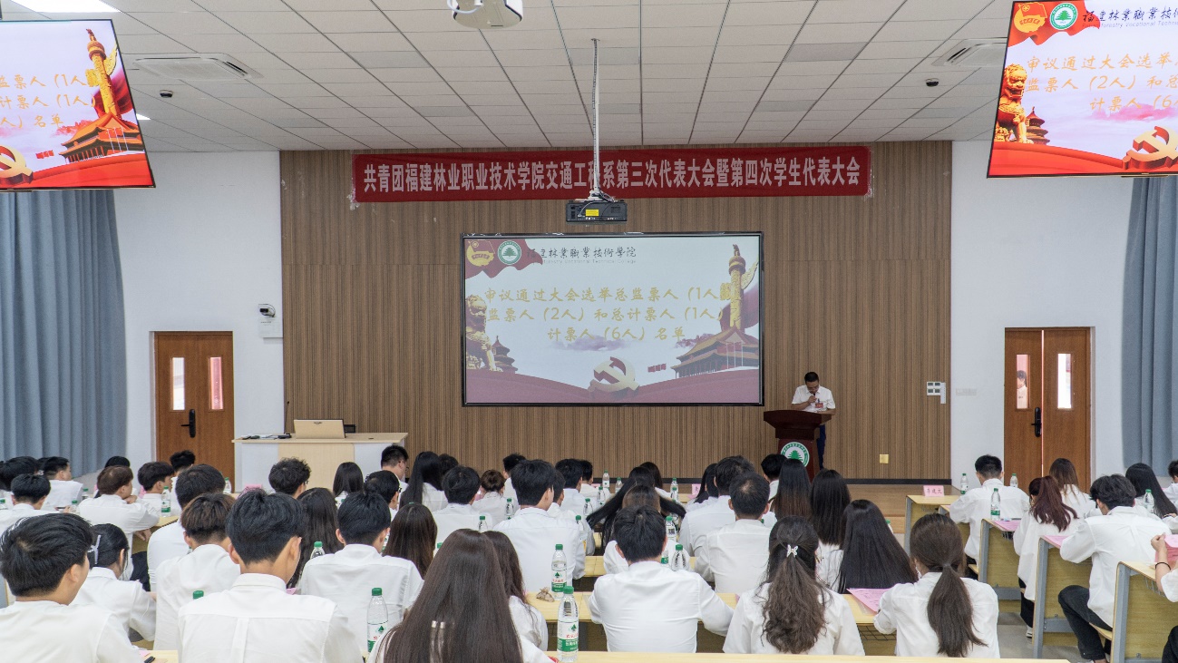 为进一步加强和规范团学组织与学生干部队伍建设,团结带领广大青年学生拼搏进取、砥砺奋斗,为实现中华民族伟大复兴的中国梦贡献青春力量。7月3日下午,交通工程系第三次团员代表大会暨第四次学生代表大会在阶梯教室(二)顺利召开。系党总支书记、主任孙华,院团委副书记雷栩艺,系党总支副书记吴旻,系副主任李林威,系专职组织员黄雪媛,系学生科科长兼团总支书记李建文,系教务科科长陈毅勇,全体专职辅导员,建筑工程系系团总支副书记(学生)林宇婷同学及团员代表、学生代表参加本次大会,大会由系学生科科长兼团总支书记李建文主持。