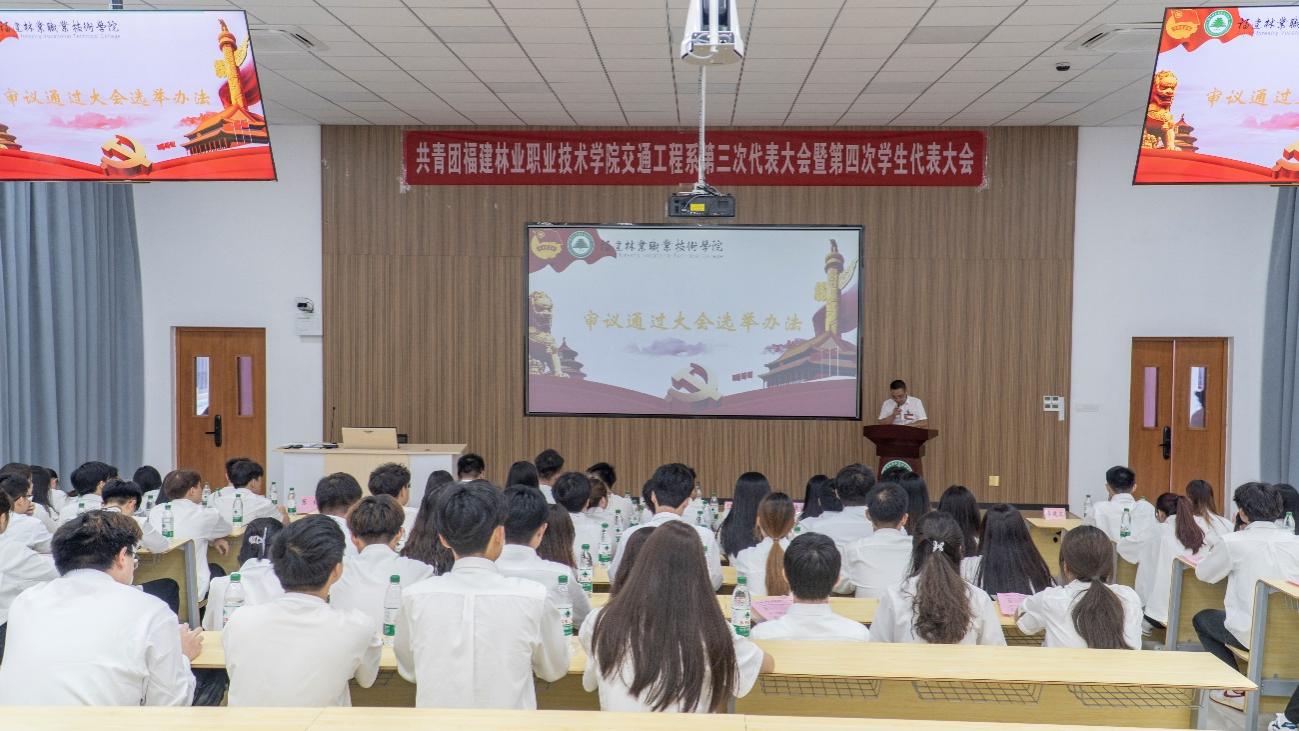 审议通过大会选举办法,系学生科科长兼团总支书记李建文宣读大会的选举办法——根据交通工程系学生规模和相关规定,代表由各班级、部门、社团等各选举单位按照分配名额组织学生酝酿提名,根据多数学生意见确定代表候选人,资格审查通过公示后,通过各选举单位团员代表及学生代表。团员代表大会、学生代表大会采用无记名投票差额选举办法产生代表。
