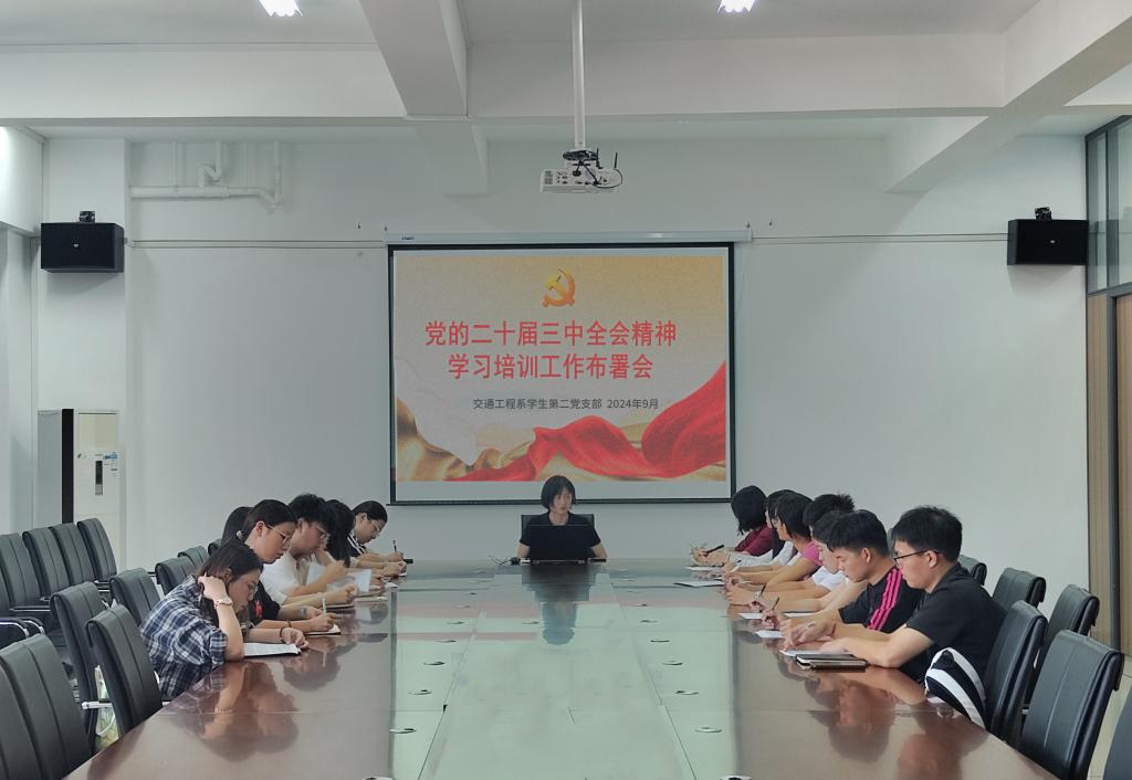 为了深入学习贯彻党的二十届三中全会精神,贯彻落实学院党委篮球欧洲杯下注_欧洲杯投注网站下载-官网学习党的二十届三中全会精神学习培训工作的实施方案,进一步提升学生党员的政治素养和理论水平,确保全会精神在学生党员中得到广泛传播和深入学习,2024年9月20日,交通工程系学生第一、第二党支部依次在交通楼501会议室组织全体师生党员开展党的二十届三中全会精神学习培训工作布署会。
