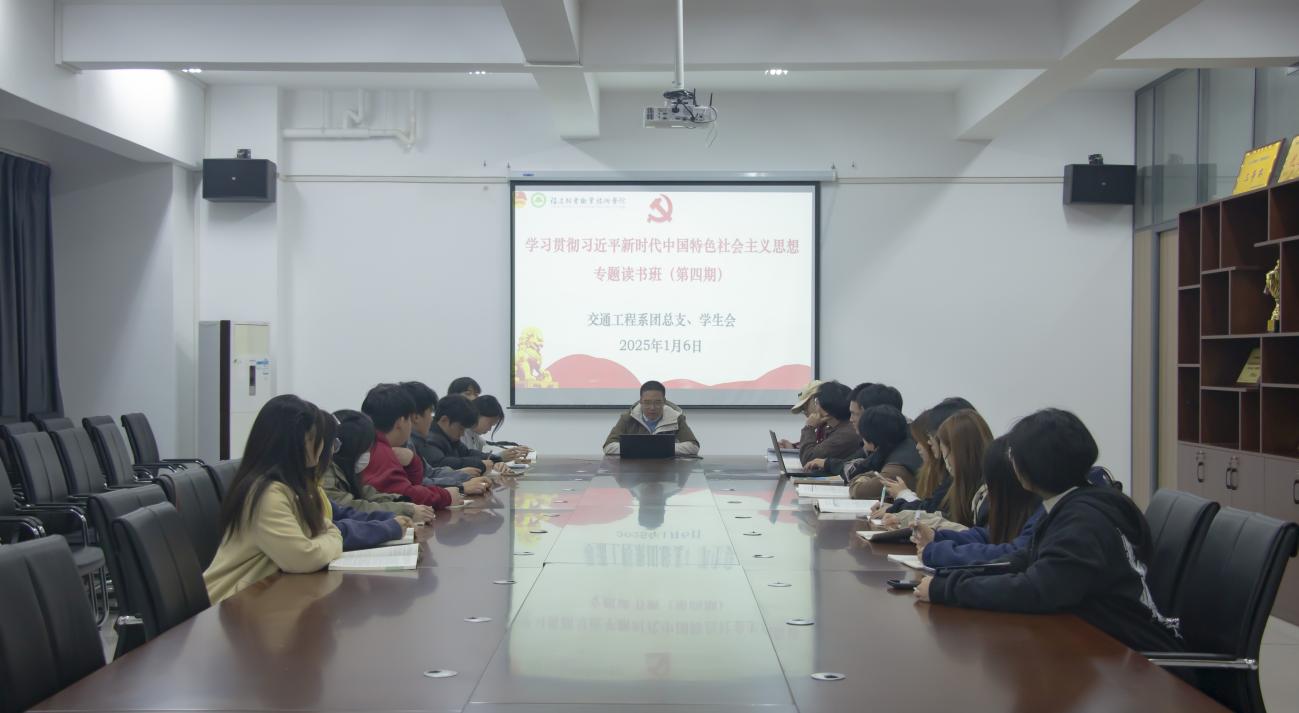 河山添锦绣,星光映万家。新年开篇之际,为深刻领会习近平主席2025年新年贺词的重要精神,为新的一年凝聚奋进力量,1月6日,交通工程系团总支在系501会议室举行了习近平新时代中国特色社会主义思想(第四期)专题读书班。