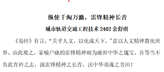 为深入学习贯彻习近平总书记篮球欧洲杯下注_欧洲杯投注网站下载-官网弘扬雷锋精神的重要指示精神,进一步传承和弘扬雷锋精神,推动志愿服务事业蓬勃发展,激励学生积极践行社会主义核心价值观。近期,系团总支组织开展“弘扬雷锋精神,践行青春使命”征文比赛活动,此次比赛得到了同学们的热烈响应,大家踊跃投稿,用文字表达对雷锋精神的理解与传承,展现新时代青年积极向上的精神风貌。