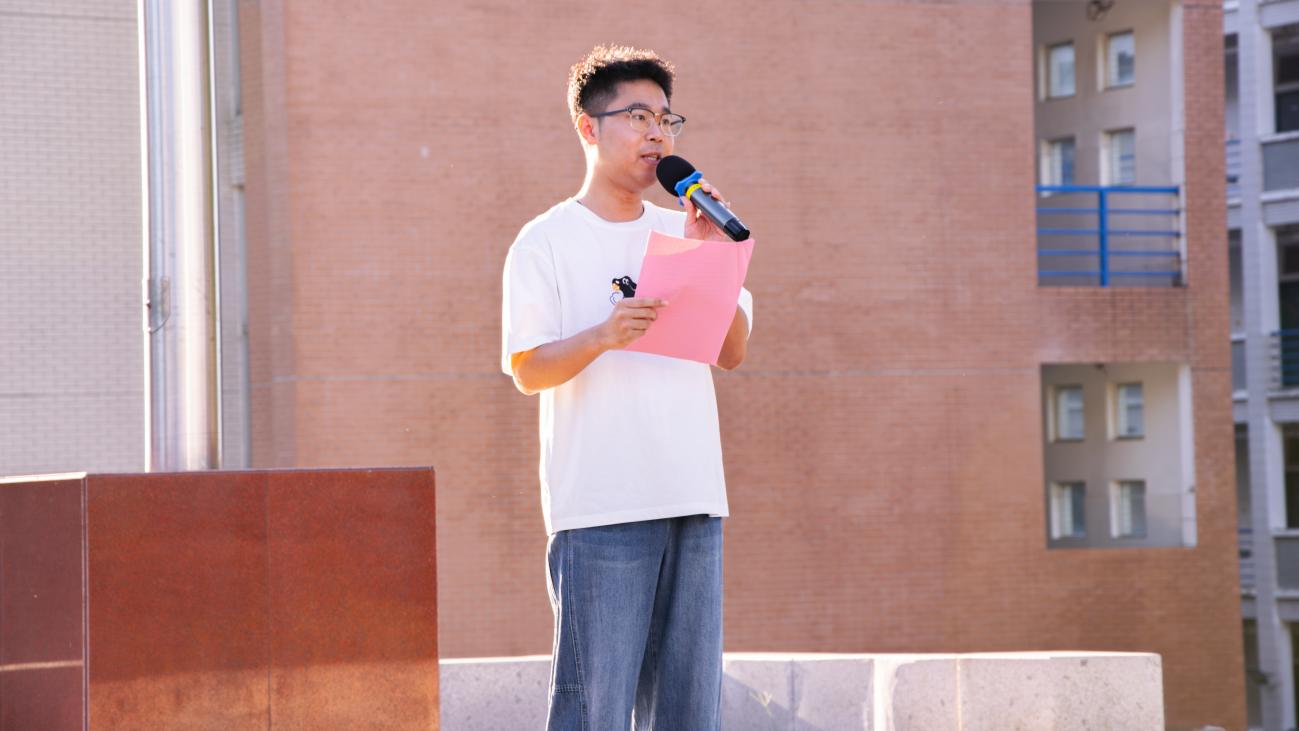 升旗仪式后,专职辅导员高旭老师在国旗下讲话。他指出,八十年过去了,但是历史的回声依然清晰,先烈们用生命和鲜血铸就的抗战精神,永远是激励我们前进的强大动力。他勉励同学们不仅要铭记那段烽火岁月,更要将不畏艰难、团结奋斗的精神融入日常的学习和生活中,锻炼体魄,钻研学识,将来为国家的繁荣与发展贡献智慧和力量。