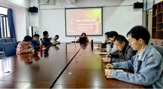 为加强教师党员师德师风建设,3月30日下午,交通工程系教工党支部召开全体党员大会,党支部书记黄连英给支部全体党员上党课,组织党员学习新修订的《中国共产党纪律处分条例》(以下简称“条例”)。