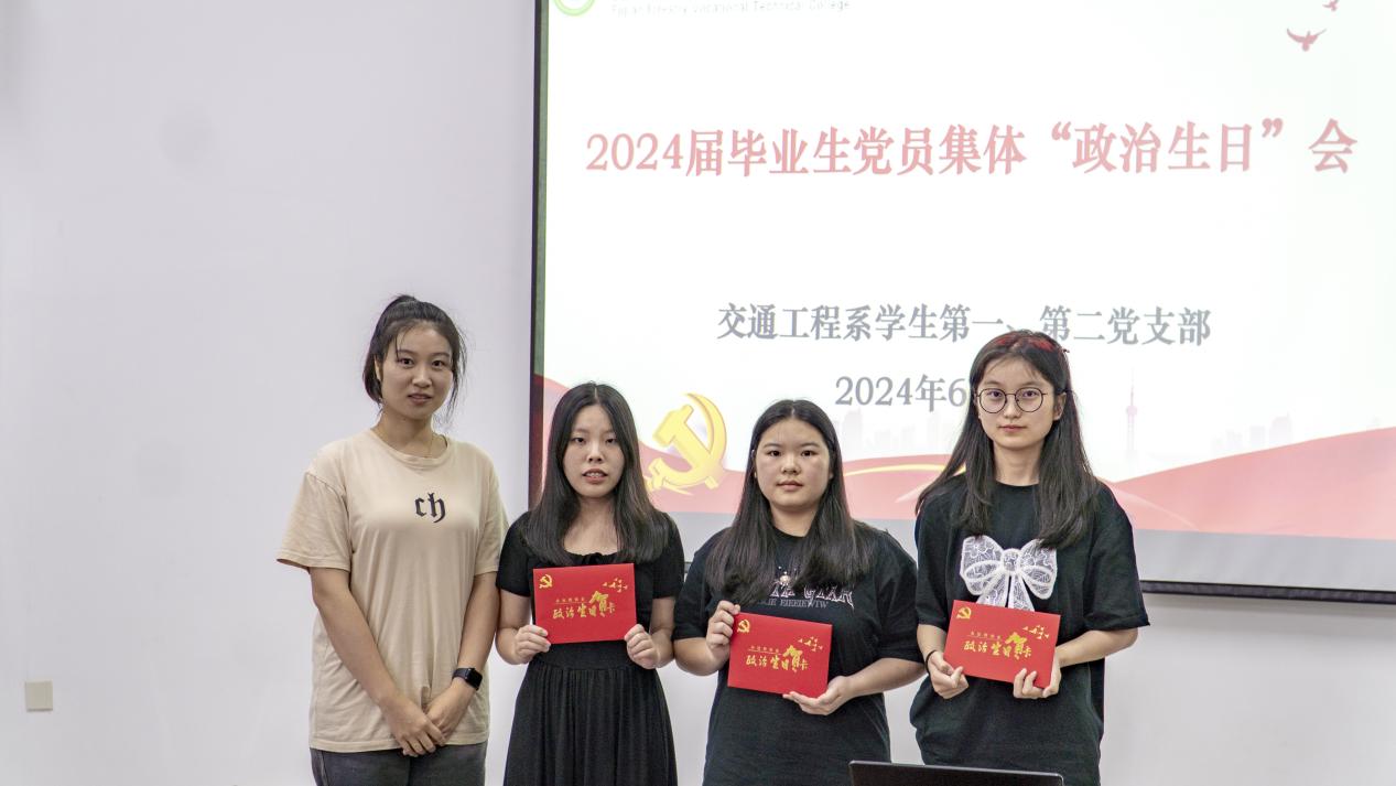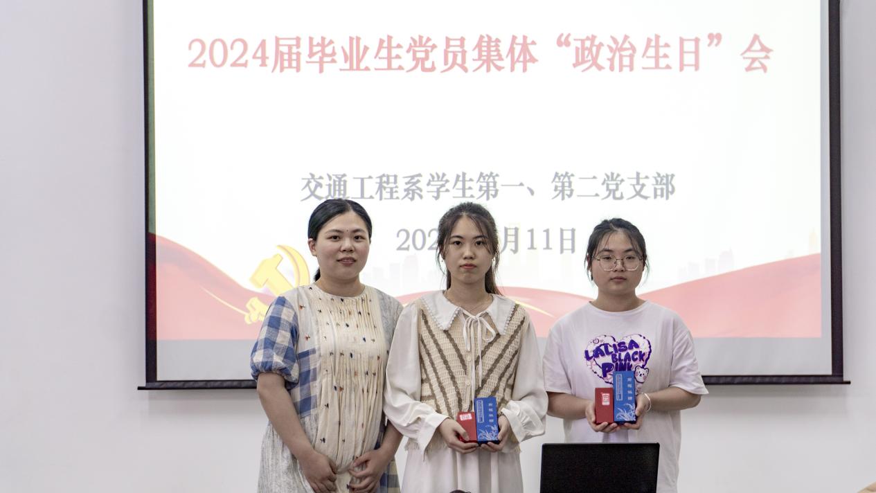 为深入学习贯彻习近平新时代中国特色社会主义思想和党的二十大精神,推动党纪学习教育走深走实,引导毕业生党员学纪、知纪、明纪、守纪,增强支部党员党性修养,强化党员身份意识和责任意识,交通工程系学生第一、第二党支部于6月11日在交通楼会议室开展2024届毕业生党员集体“政治生日”会主题党日活动。系学生第一、第二党支部师生党员参加本次活动。