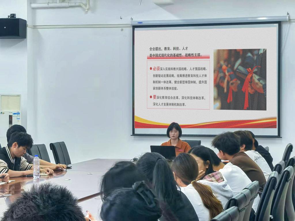 为了深入学习贯彻党的二十届三中全会精神,深刻领悟习近平总书记篮球欧洲杯下注_欧洲杯投注网站下载-官网进一步全面深化改革、推进中国式现代化的一系列新思想、新观点、新论断,11月14日,交通工程系学生第二党支部在交通楼501会议室开展专题党课。此次党课由学生第二支部老师郑彦汝讲授,师生党员、入党积极分子参加党课。