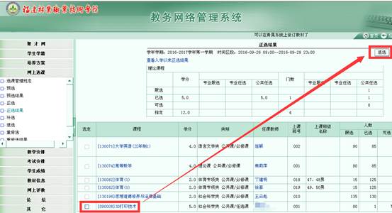 重新再到“正选”菜单,选修其他课程。