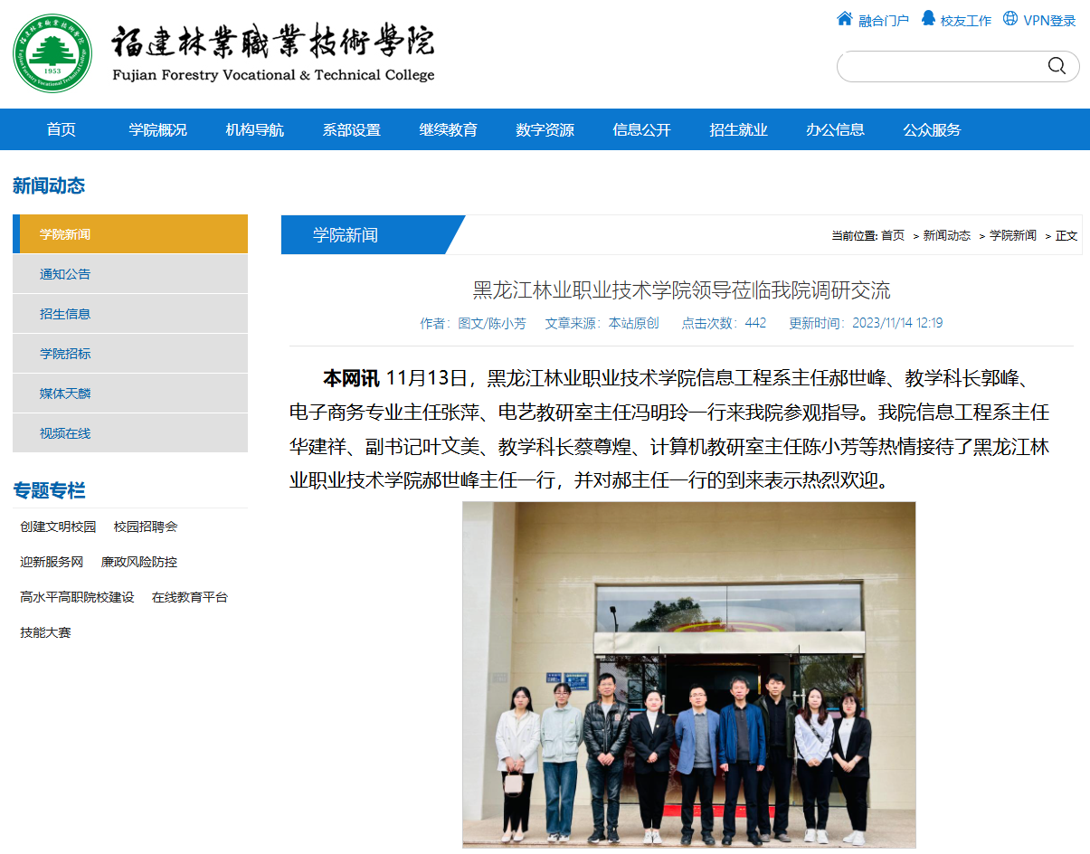 (8)2023年11月13日黑龙江林业职业技术学院信息工程系主任郝世峰一行来莅临参观交流调研