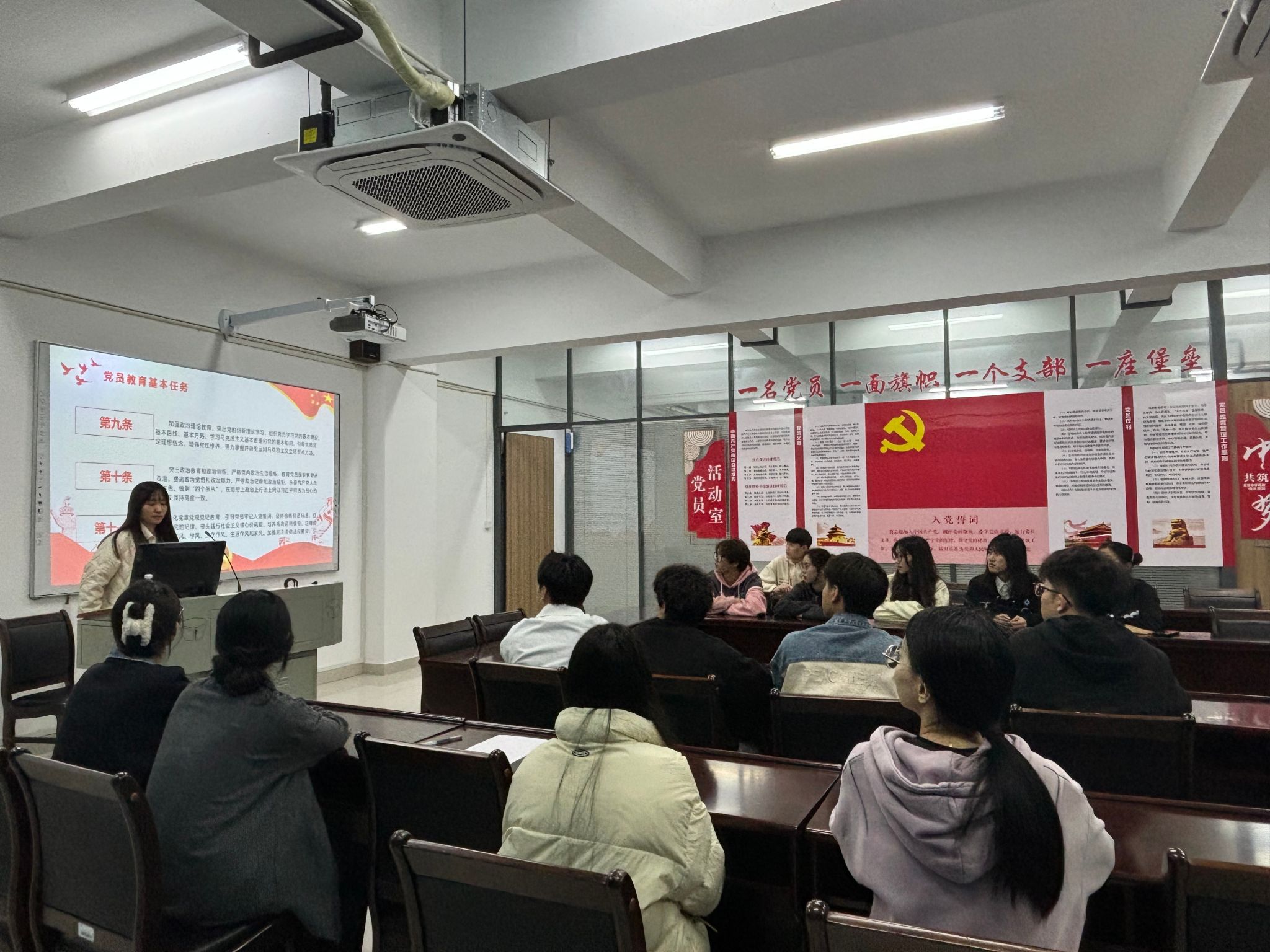 本网讯/为持续深入学习贯彻习近平新时代中国特色社会主义思想,进一步加强新时代党员教育管理工作,提升党员队伍建设的科学化、规范化水平,建筑工程系学生第一党支部于2025年2月27日在建工楼502会议室,成功组织召开了学习《中国共产党党员教育管理工作条例》(以下简称《条例》)专题党课。本次党课由党支部书记陈慧婷主讲,支部全体党员及入党积极分子积极参与学习。