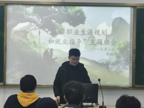 主题班会上,各班辅导员从职业与学业生涯规划、就业形势与政策、就业指导、就业引领四个方面,着重强调了做好职业与学业生涯规划的重要性,引导大家自主思考未来职业发展方向,树立远大理想。同时也通过事件案例开导学生通过对自身性格、兴趣、特长以及所处环境的客观全面分析,充分认识自我、认清就业形势、找准自身定位,积极应对社会变化,从容面对日趋激烈的就业压力,赢在起跑线。