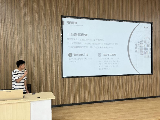 接着由易班工作站负责人潘梓涵与就业创业部负责人林鑫泰分别向大家对发展综合素质拓展这一专题进行了深入剖析,强调了综合素质在学生干部工作中的重要性,并分享了一些实用的综合素质拓展方法和技巧,如时间管理、工作分配、未来规划以及一些缓解工作压力的方法,为学生干部的综合素质提升提供了全方位的支持。