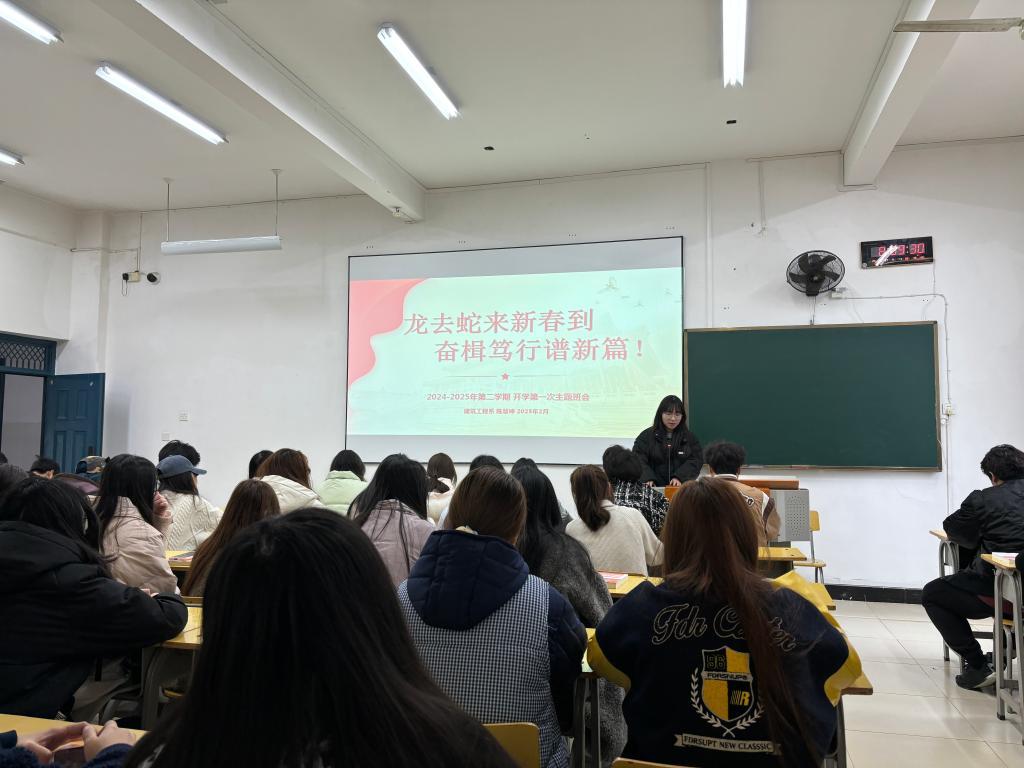本网讯/新学期伊始,为深入学习贯彻习近平新时代中国特色社会主义思想,全面落实党的二十大和二十届二中、三中全会精神,全面落实立德树人根本任务,切实加强学生思想政治教育,引导学生以昂扬向上的精神风貌开启新学期新征程,2025年2月15日至3月2日,建筑工程系组织全体辅导员于开学两周内,围绕安全教育、学生管理制度、心理健康教育、法治教育、行为养成教育等主题,开展了2024-2025学年第二学期开学第一次主题班会。