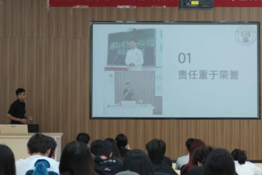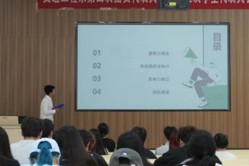 系学生会主席团代表陈哲磊同学围绕青年领导力与管理能力展开专题授课,从领导力理论体系、项目组织执行方法论,到影响力构建策略与团队建设实践,系统阐释能力提升路径,强调理论指导与实践应用的有机结合。