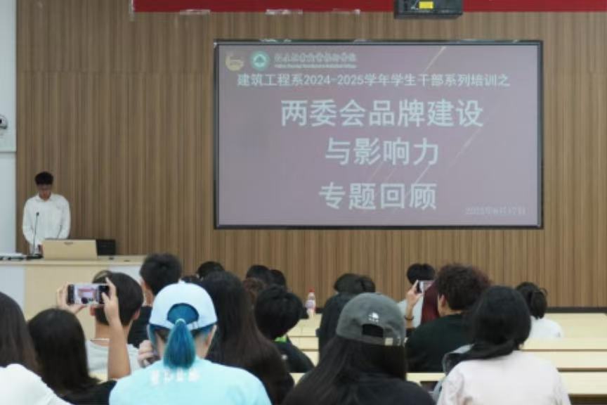 本网讯/为全面提升建筑工程系学生干部综合素质,强化领导能力与团队协作水平,6月17日,建筑工程系于阶梯教室开展2024-2025学年学生干部系列培训之青年领导力与项目管理专题培训。本次培训由2024级学生干部郑文瑾主持,2023级学生干部及2024级储备干部共同参与。