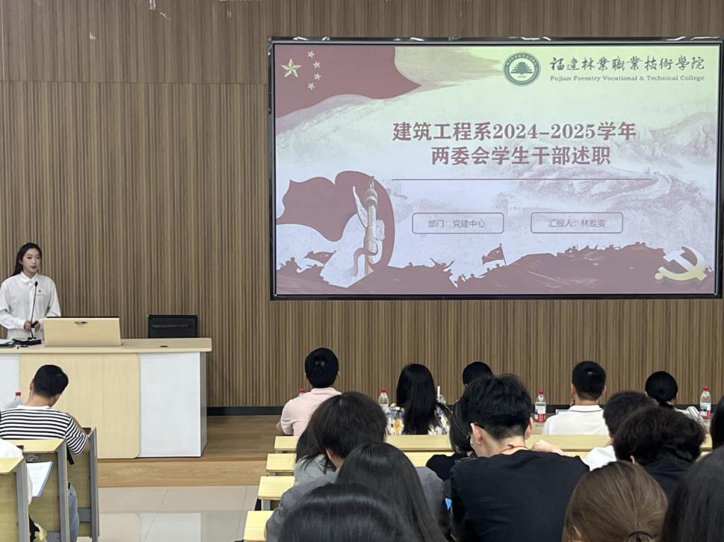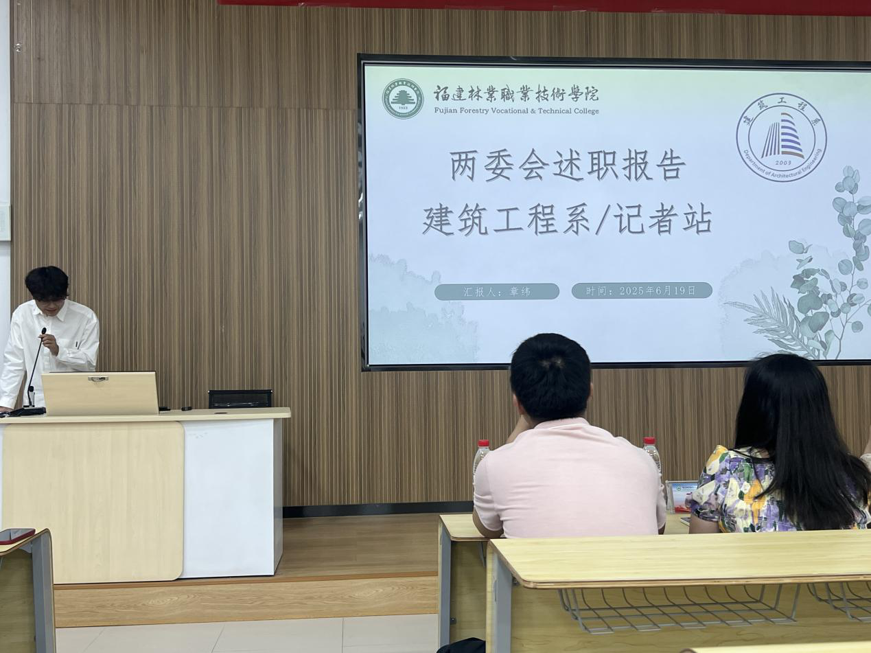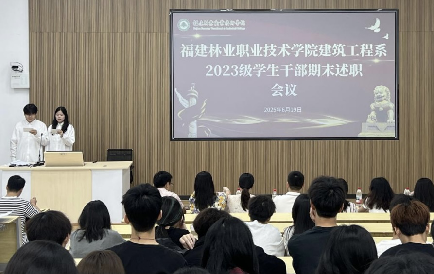 本网讯/为全面总结学生干部在本学年中的工作表现,深入总结工作经验,查找存在问题,明确改进方向,进一步提升学生干部的综合素质和履职能力,增强学生组织的凝聚力和执行力,为今后的学生工作夯实基础。建筑工程系于2025年6月19日在阶梯教室二成功开展了2023级两委会学生干部期末述职评议活动。本次述职评议由建筑工程系2023级两委会各部门学生干部进行现场述职,系党总支书记魏长专老师、系学生科科长兼团总支书记刘克芹老师及各部门分管老师共同评议,2024级储备干部及干事到现场观摩学习。