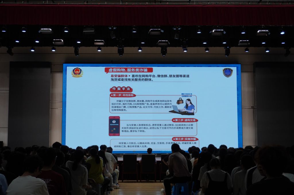 讲座中,童达承警官以近年来大学生被电信诈骗的真实案例为核心脉络,系统拆解校园高发诈骗类型的作案逻辑与防范要点,内容直击新生反诈认知痛点。针对当前三类高频骗术,他进行了深度剖析:在网络交友诱导转账案例中,结合受骗学生与虚拟恋人的聊天记录,揭露诈骗分子通过情感铺垫、制造困境、诱导转账的三步套路;在冒充公检法威逼汇款案例里,展示诈骗分子伪造的通缉令、冻结通知书等虚假文件,解析其利用大学生对司法机关的敬畏心理进行施压的手段;在虚假投资平台资金收割案例中,通过展示受骗学生的充值记录与平台崩盘后的界面截图,还原低投入高回报、内幕消息等话术的欺骗性。
