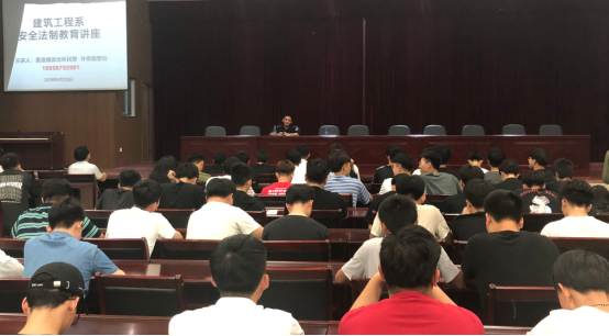 本网讯 为增强建筑工程系师生们的安全法制意识,共同营造一个安全和谐的校园环境,4月23日晚7点30分,建筑工程系特邀夏道镇派出所民警许奇勋警官和思政部教师王云彪在江南校区大礼堂,为师生们开展了一场“安全法制教育”讲座。会议由系学生科长兼团总支书记陆晓莉主持。