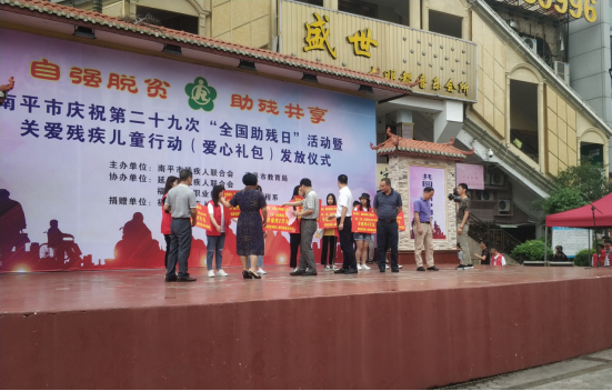 随后,与会领导向7个(县市、区)残联及延平区残疾人、学生代表发放爱心礼包。