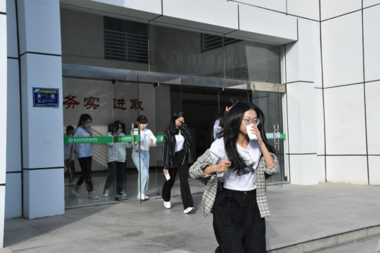 下午2:50,又一次哨声响起,辅导员陈晴、林燕琼立即组织学生有条不紊、安全、迅速地离开教室,学生们手捂口鼻、蹲身沿着既定的疏散线路向人工湖集合。王云彪书记、陆晓莉老师为本次演练做总结发言,要求同学提高安全用电意识,严禁使用大功率违禁电器、乱扔烟蒂等存在安全隐患行为,树立“生命至上、安全第一、预防为主”的意识。