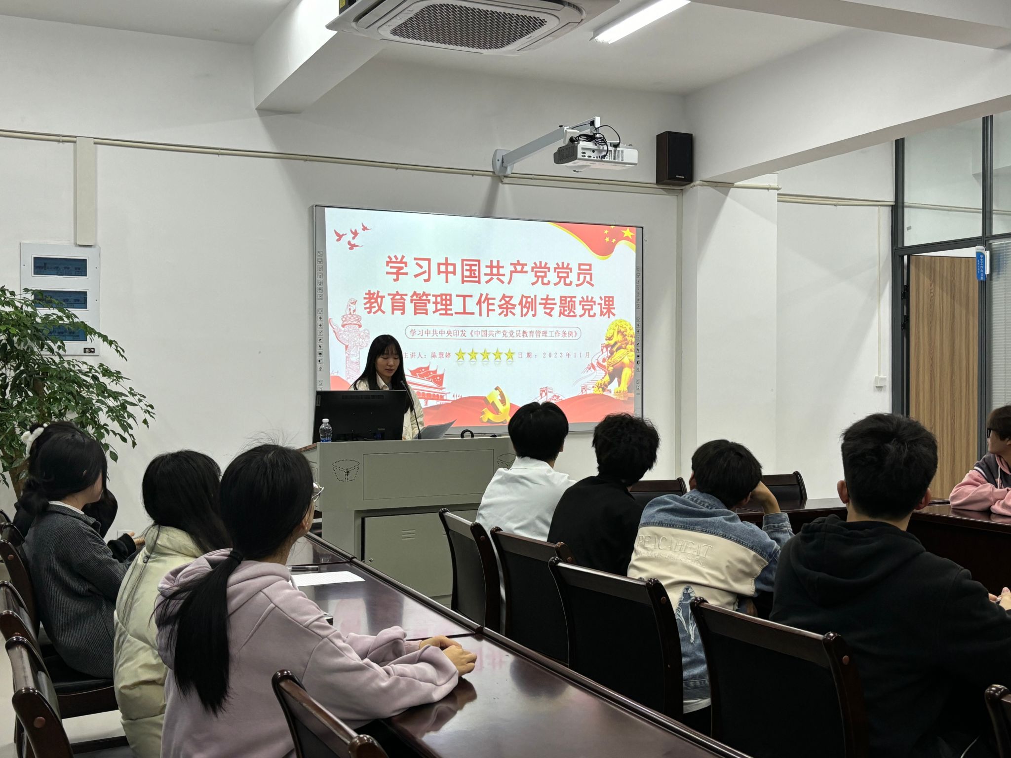 本网讯/为持续深入学习贯彻习近平新时代中国特色社会主义思想,进一步加强新时代党员教育管理工作,提升党员队伍建设的科学化、规范化水平,建筑工程系学生第一党支部于2025年2月27日在建工楼502会议室,成功组织召开了学习《中国共产党党员教育管理工作条例》(以下简称《条例》)专题党课。本次党课由党支部书记陈慧婷主讲,支部全体党员及入党积极分子积极参与学习。