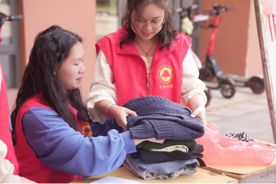 在活动现场,工作人员分工明确,各司其职,安排每位想要献爱心的同学顺利捐赠,志愿者们谦和有礼的态度,同学们踊跃捐衣的行为,无不彰显着奉献、友爱的精神。每件衣物都是全场最靓丽的风景,更是希望与爱的汇聚。