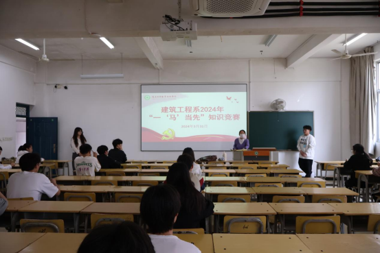 本网讯/为深入学习贯彻习近平新时代中国特色社会主义思想,坚持不懈用习近平新时代中国特色社会主义思想铸魂育人,以学习“马克思主义理论”为主线,通过以赛促学,来激发广大学生对学习党的基本理论知识的兴趣和热情。建筑工程系就业创业部于2024年3月31日下午成功举办“一‘马’当先”知识竞赛。