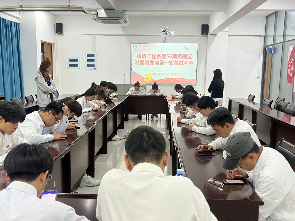 本网讯/为进一步加强党员队伍建设,确保党员发展质量,积极开展拟发展对象前考察工作,建筑工程系学生第一党支部于2024年11月16日在建工楼5楼党员活动室对56期的入党积极分子进行了党的理论知识测试笔试及面试考察。