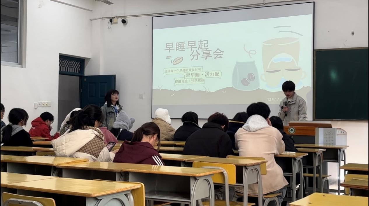 每一次打卡,每一位同学作的交流,都是对自我的挑战与超越;每一个坚持早睡早起的日子,都让青春的脚步更加坚实有力。如今,虽打卡与分享会已止,但健康生活的理念应永驻心间。