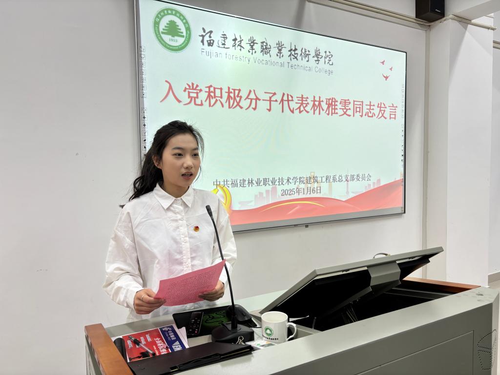 入党积极分子代表林雅雯同志也表达了对党组织的向往,她表示,将会始终牢记党的宗旨,时刻坚守初心使命,努力践行社会主义核心价值观,努力发挥先锋模范作用,争取早日加入中国共产党。