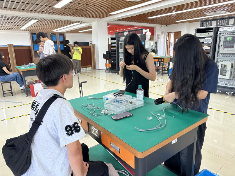 决赛现场,选手们全神贯注,剥线、熔接、端接动作干净利落,展现了扎实的专业功底。不少同学表示:“竞赛让我们意识到细节的重要性,比如线序的准确性直接影响系统稳定性,这是课本上学不到的实战经验。”