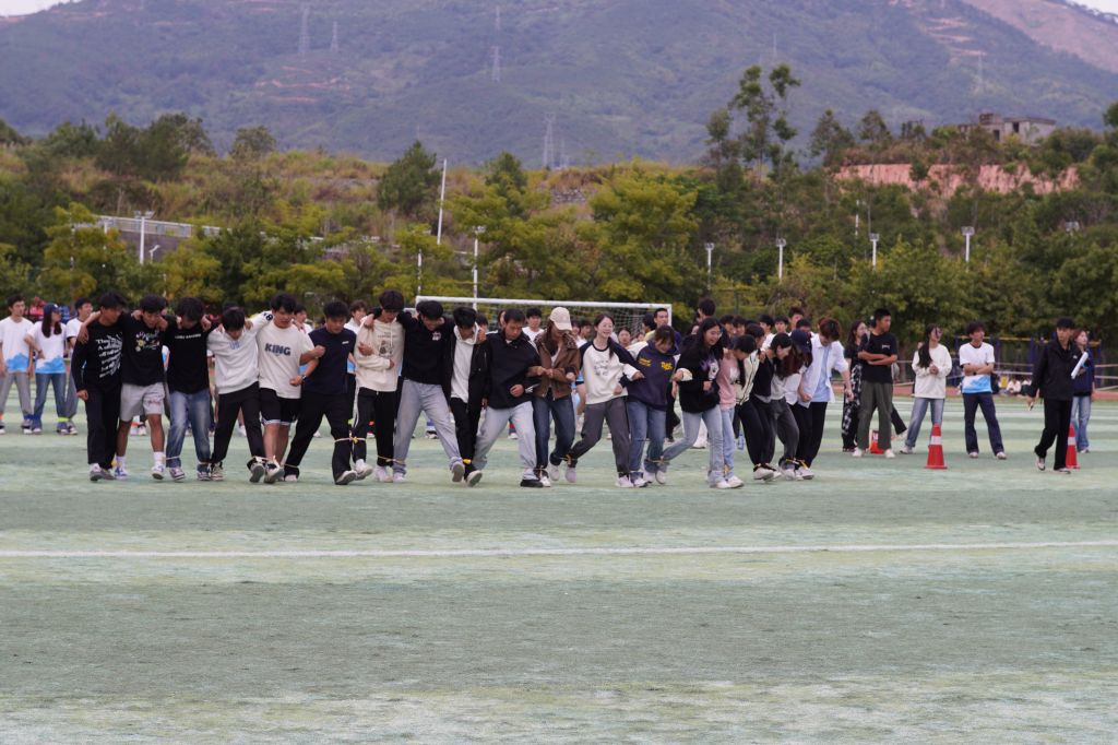 系两委会趣味运动会则为赛场增添了别样活力。“集体绑腿跑”考验团队协作的默契,队员们步调一致、齐头并进,在同步前行中凝聚向心力;“仰卧起坐传送带”比拼集体力量,队员们依次将球一个个的传送、齐心协力,呐喊声与欢呼声震彻赛场;紧接着还有20×100米的接力赛跑,建筑工程系学子们团队协作、高效衔接、坚韧不拔的精神感染了在座的所有人。趣味项目不分胜负、重在参与,既释放了两委会成员的工作压力,更锤炼了大家团结协作、互帮互助的团队精神,为系部学生工作的高效开展注入了新的活力。