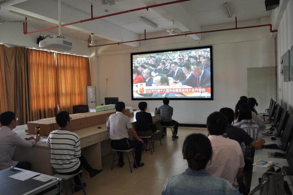 学院各级党组织积极组织学院全体师生员工、离退休干部通过电视、网络等不同形式集体收听收看了十九大开幕会直播盛况,聆听习近平同志代表第十八届中央委员会向党的十九大所作的工作报告。会议室、办公室、实训室、教室……在学院各个角落,处处回荡着党的旋律,全院师生共同度过难忘的“十九大时光”。