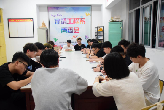 本网讯 新学期,新起点,新梦想。3月19日晚,建筑工程系两委会干部第一次例会于本院江南校区三、四号宿舍楼三楼建工系两委会办公室如期召开。此次会议由团总支副书记钱雄志主持,学生科科长兼团总支书记陆晓莉老师、主席团成员与各部门部长出席例会。