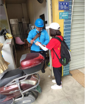 为劳动者送上一瓶水。夏日炎炎,劳动者们在烈日下为城市的正常运转而努力着,社会实践的队员们在长汀县各街道上寻找坚守岗位的防卫工人、快递员、外卖员,为他们送上属于夏日的一份清凉。