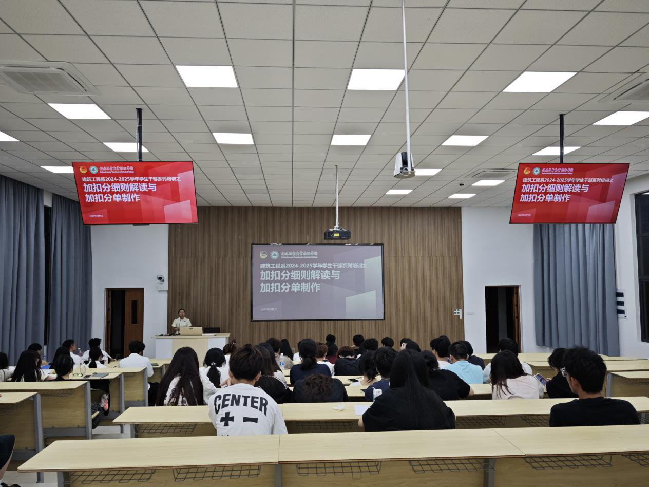在热烈的掌声中,本次"加扣分细则解读与加扣分单制作"专题培训圆满落下帷幕。未来,建筑工程系学生干部将以更加严谨的工作态度、更加专业的业务标准,扎实落实加扣分管理工作,持续为营造公平有序、积极向上的校园环境注入强劲动力。