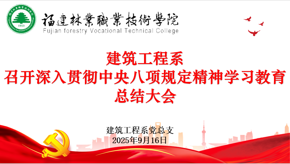 本网讯/2025年9月16日,建筑工程系在建工楼502会议室召开深入贯彻中央八项规定精神学习教育总结大会。全系教师党员出席会议,会议由建筑工程系党总支书记魏长专同志主持。