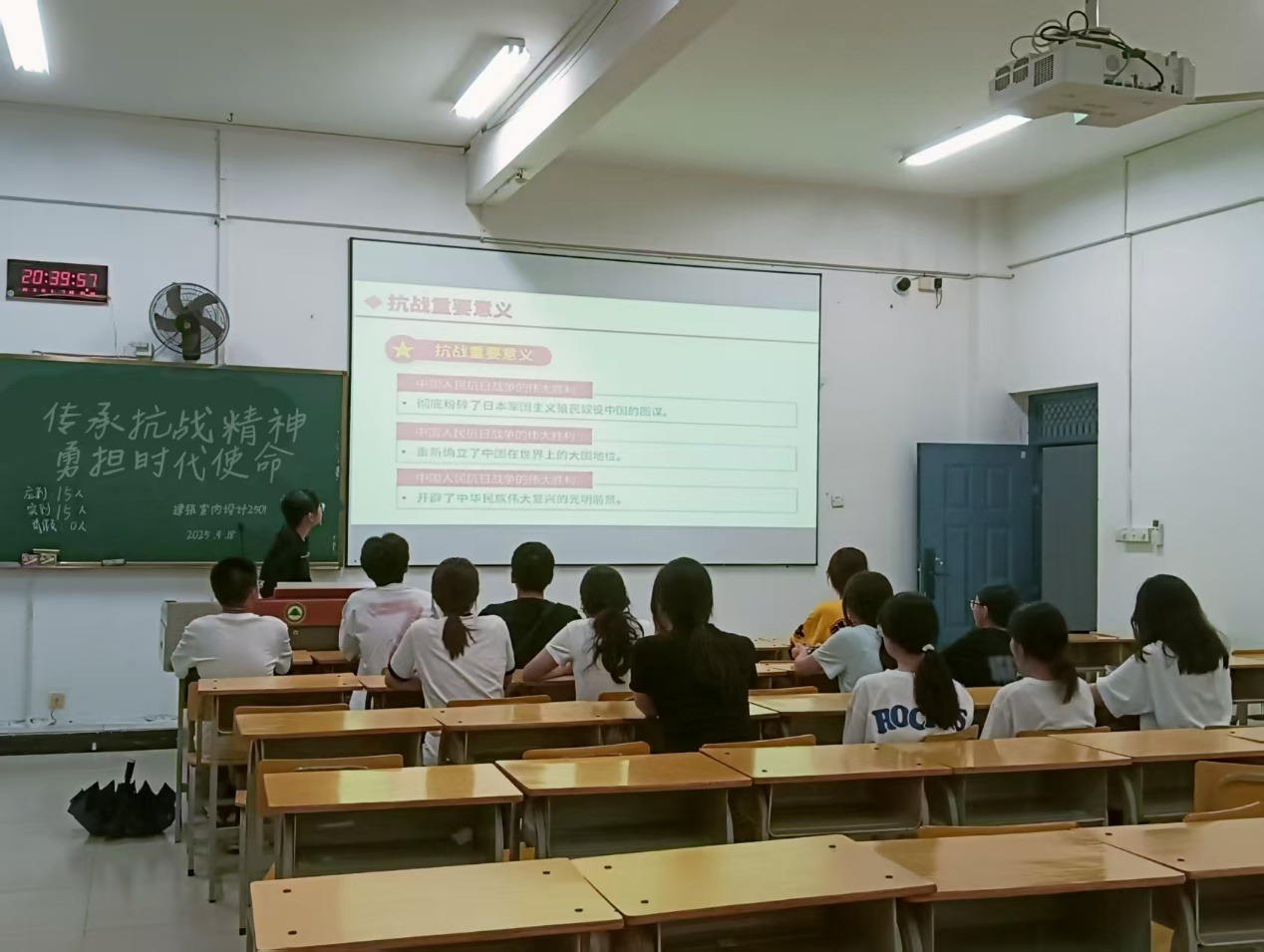 活动开篇,各班级通过开展抗战历史知识讲座、红色书籍阅读分享会和抗战英雄事迹宣讲会等形式,带领同学们深度回溯那段波澜壮阔的抗战岁月,深刻领会抗战精神的丰富内涵与时代价值。在“如何将抗战精神融入日常学习生活”的主题研讨环节,团员青年们积极踊跃发言,结合抗战时期的英勇事迹与校园生活实际情况,热烈探讨抗战精神的传承与践行路径。同学们纷纷提到,抗战精神激励着我们在面对困难时勇往直前,在学习中勤奋刻苦,为实现中华民族伟大复兴贡献自己的力量。此次团日活动秉持学思践悟相融合的理念,助力同学们将传承抗战精神与担当时代使命内化于心、外化于行。各团支部还组织同学们观看抗战题材纪录片、学习先辈英勇事迹等,引导同学们增强民族自豪感和历史责任感,自觉把使命担当转化为日常行动。