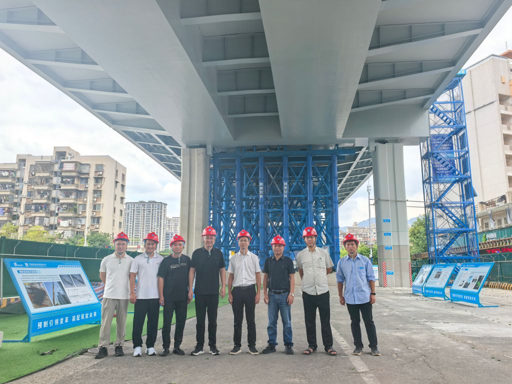 双方围绕项目的关键技术运用及取得成果展开深入探讨。通过交流了解到该项目工况复杂,项目技术团队首创福建省双曲花瓶异形预制墩柱施工工艺,通过BIM技术线型定位、模板平曲面分离设计等创新手段,解决了曲面结构钢筋加工精度不足、混凝土浇筑密实度控制难等行业痛点。该工艺实现大型构件工厂精细化预制,配合定制吊架吊装技术,成功破解超大型构件运输及安装误差控制难题,安装精度达2毫米级标准。