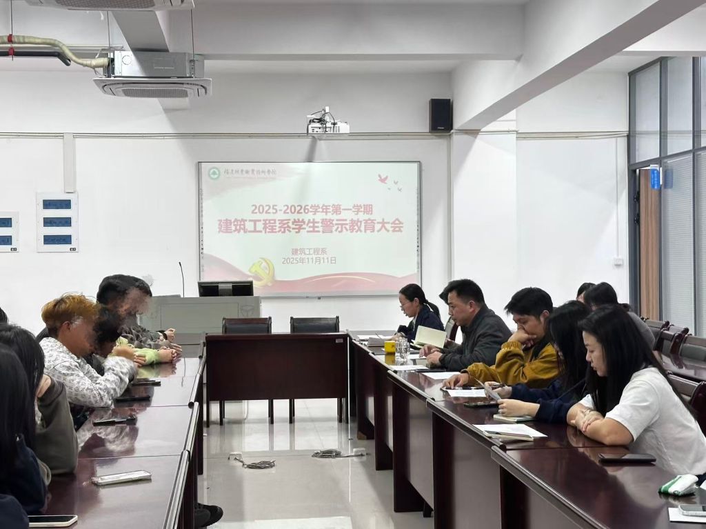 本网讯/为进一步强化学生纪律意识,营造优良学风校风,11月11日,建筑工程系在建工楼502召开2025-2026学年第一学期学生警示教育大会。建筑工程系党总支书记魏长专、学生科科长兼团总支书记刘克芹、专职辅导员及各班级违纪违规学生参加会议。
