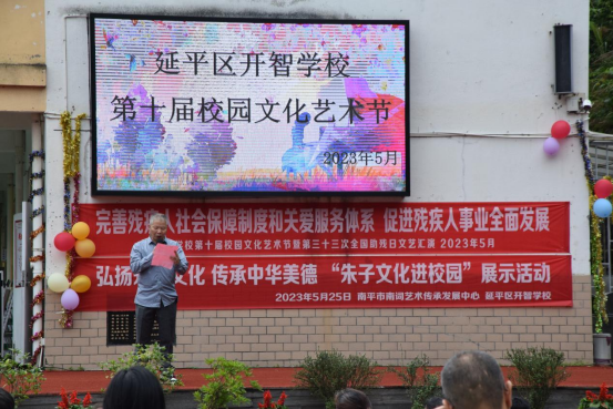 汇演伊始,南平市延平区开智学校林信燮校长致欢迎词,对魏长专一行师生的到来表示热烈欢迎,对助力开展校园文化艺术节文艺汇演工作表示衷心感谢。