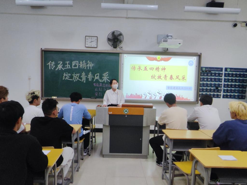 系学生科科长兼团总支书记刘克芹老师在参加智能建造技术2201班的主题团日活动时高度肯定了班级团课的精心准备、互动充分和团课中视影音等多媒体手段的良好运用,并鼓励团员青年学习和弘扬五四精神,常补精神之钙,学会独立思考和表达,不断创新和奉献。