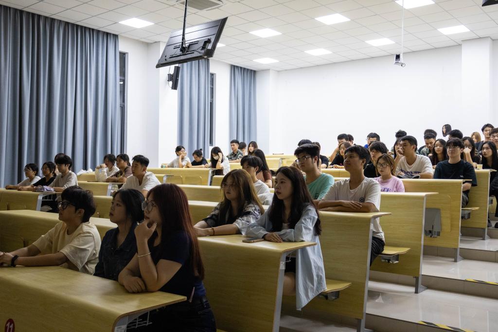 在观看过程中,青年学生们聚精会神,受益匪浅,深刻认识“延安精神”是中国共产党在革命斗争中形成的宝贵精神财富。课程讲述了陈嘉庚先生归国办教育的初衷,“久客南洋,心怀祖国,希图报效,已非一日。教育为立国之本,兴学乃国民天职。”其兴办教育、报效祖国的拳拳赤子之心深深地感动了现场的每一个学子。朱水涌强调陈嘉庚先生的这份爱国为民的情怀与中国共产党“为人民谋幸福、为国家谋复兴”的初心使命是完全契合的。他讲到,1940年陈嘉庚先生到了延安,看到了中国共产党的“延安作风”,深深触动了他的心,并指出“中国的希望在延安!”陈嘉庚先生选择了中国共产党,从此他积极带领华侨支持抗战及参与新中国建设。尽管他的一生经历了许多艰难险阻,但却为中华民族的伟大复兴,特别是中国的教育发展做出了巨大的贡献。