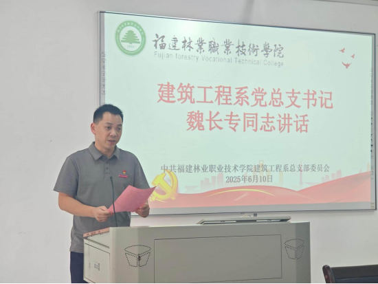 最后,魏长专书记代表建筑工程系党总支发表讲话,他首先对新发展的14名预备党员表示热烈祝贺,并指出,加入党组织是每一位党员政治生命的重要起点,标志着奋斗和追求进入新的阶段。同时提出四点希望,一是端正入党动机,坚定理想信念;二是坚持理论学习,夯实专业基础;三是党建引领行动,榜样模范先行;四是勇于担当实干,践行入党誓词。