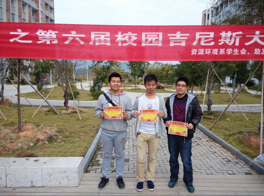 为响应共青团中央、全国学联联合教育部、国家体育总局开展的大学生“走下网络、走出宿舍、走向操场”主题群众性课外体育锻炼活动的号召。资源环境系学生会、助发委于12月7日下午在我院江南校区中心广场举办“三走”活动之第六届校园吉尼斯大赛。